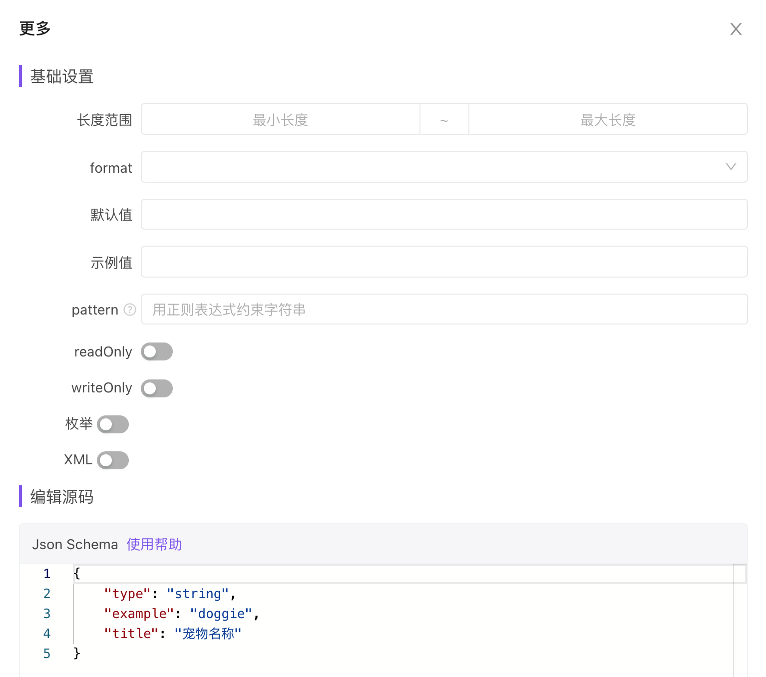 数据字段更多里设置的长度范围枚举值Parttenformat,也会作为 Mock 规则使用: